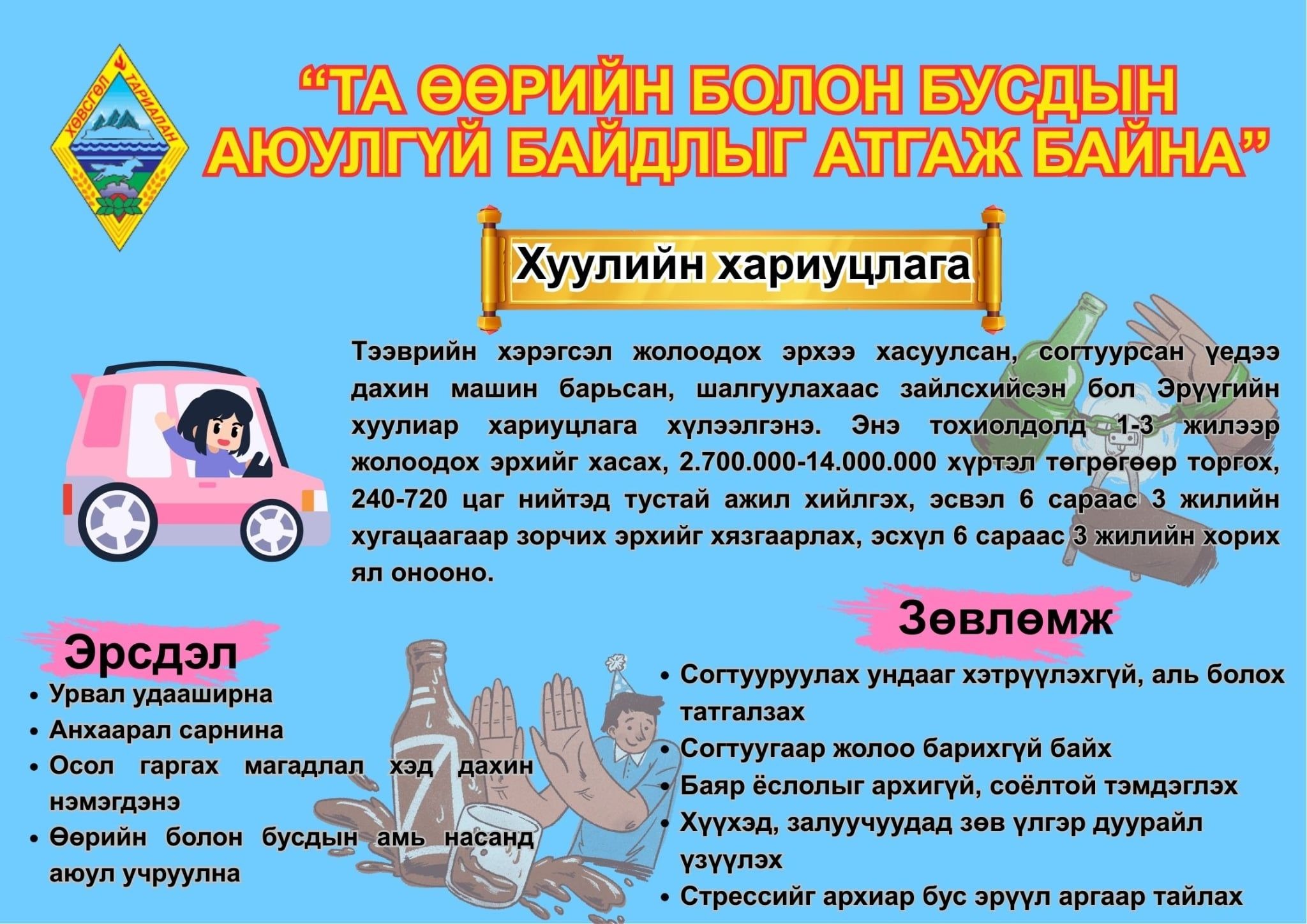 Замын хөдөлгөөний аюулгүй байдлыг хангаж хөдөлгөөнд соёлтой оролцъё